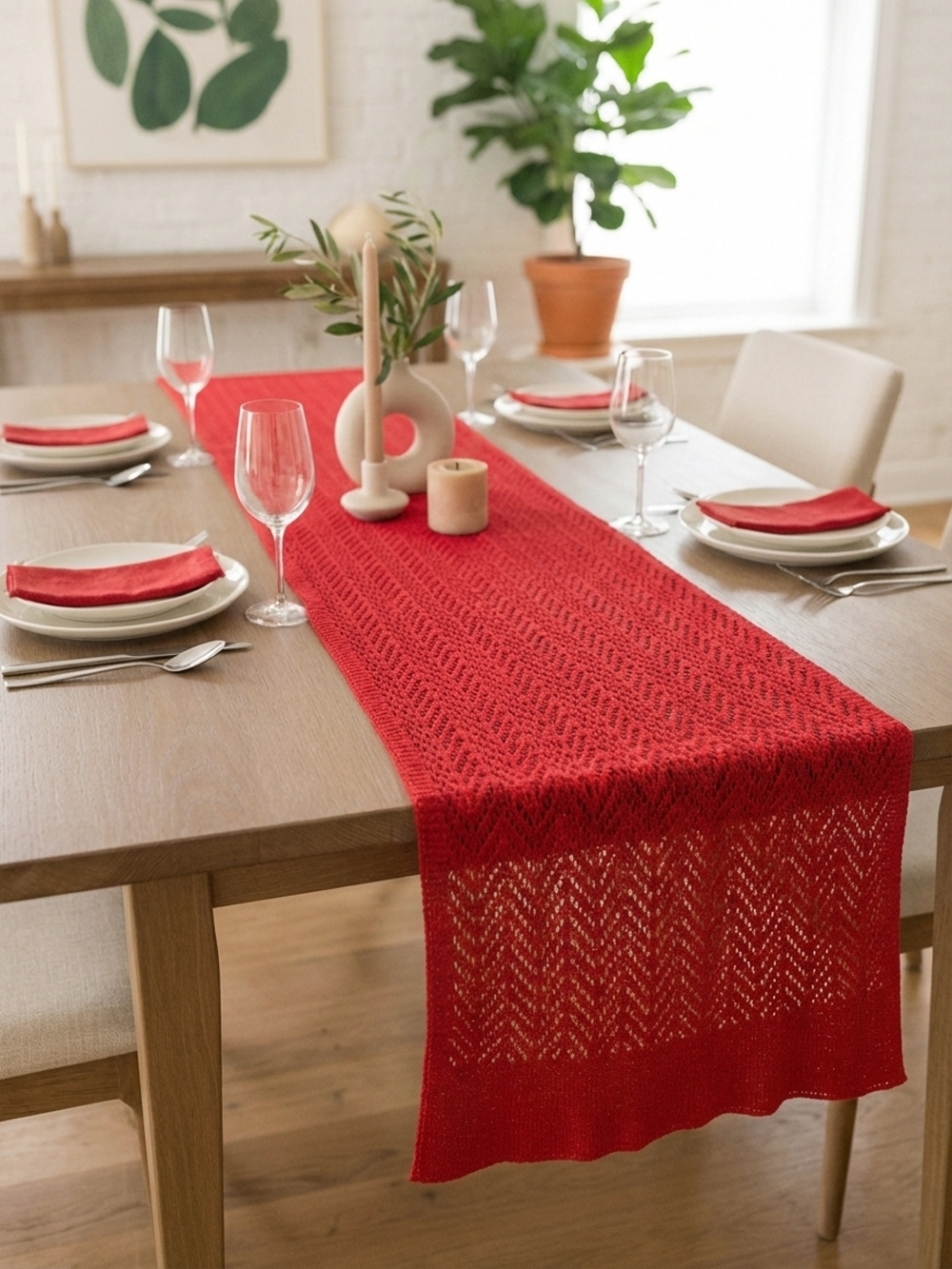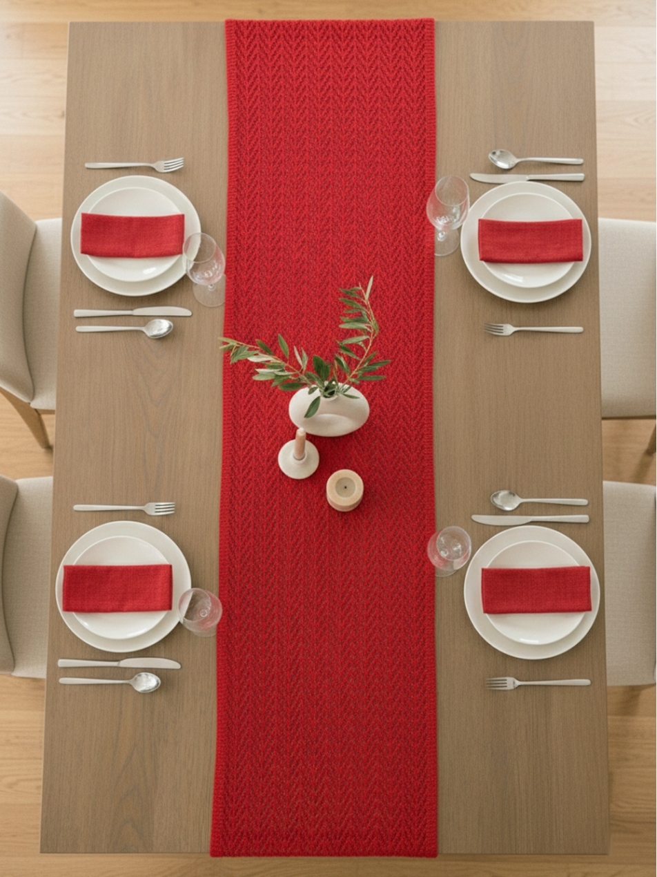 Яркий красный ранер со скандинавским узором. Хит продаж для маркетплейсов и концепт-сторов. Добавляет «солнца» в интерьер даже в пасмурную погоду.