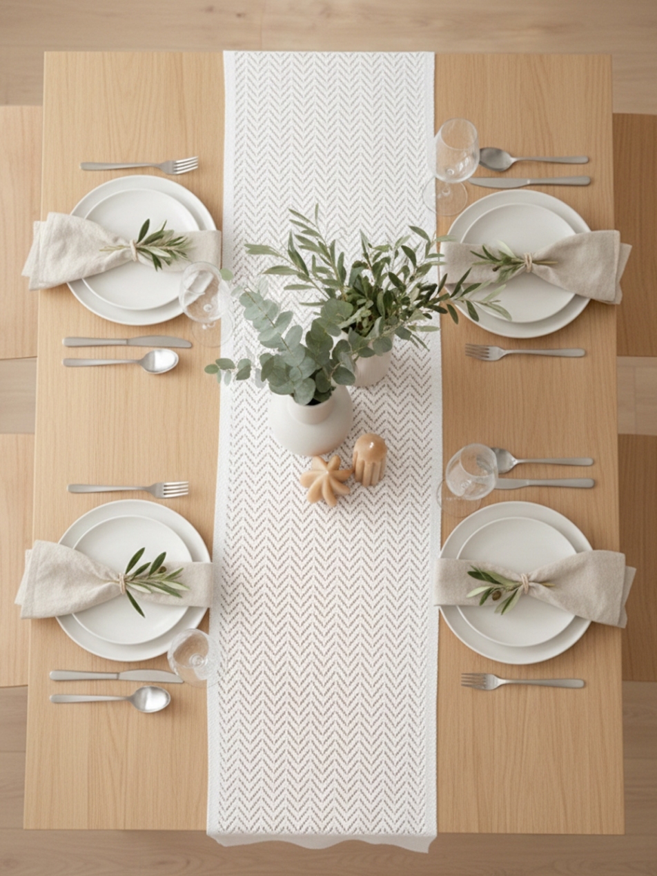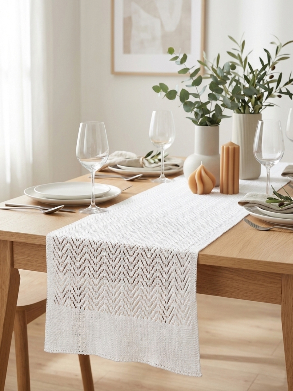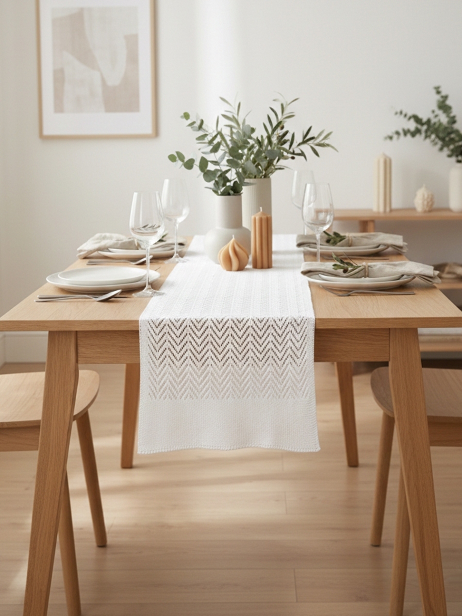 Благородный белый цвет и четкие линии. Ранер для тех, кто ищет замену классическому текстилю. Идеально для рождественских коллекций или классических интерьеров.