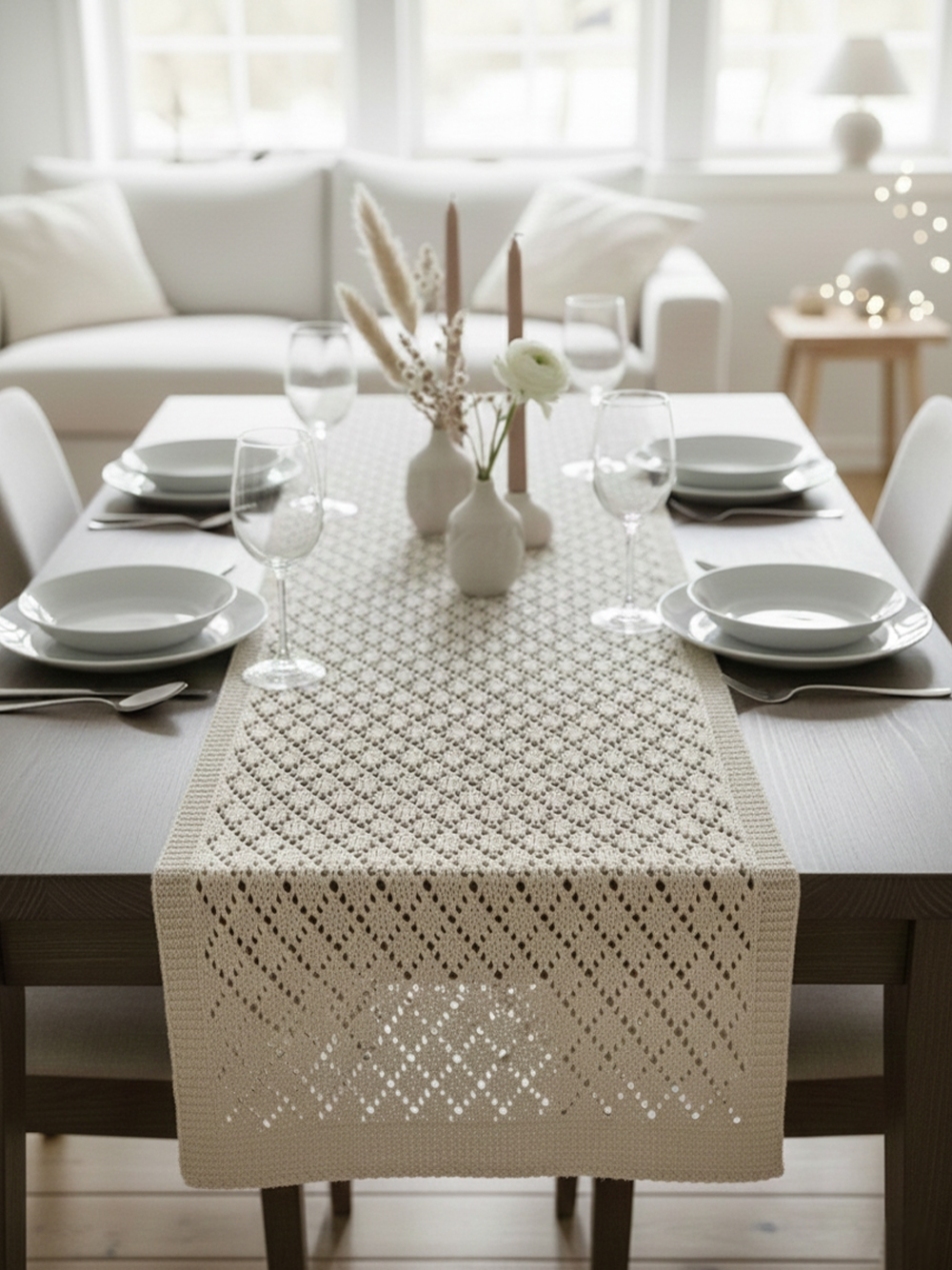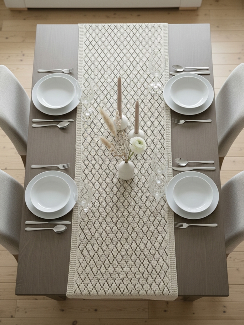 Фактурные ранеры цвета натурального льна с геометрическим узором «ромб».