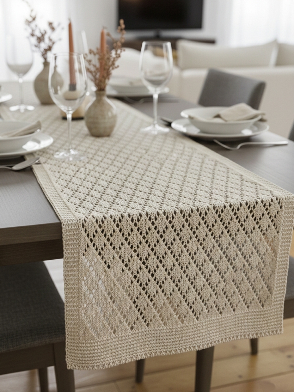Фактурные ранеры цвета натурального льна с геометрическим узором «ромб».